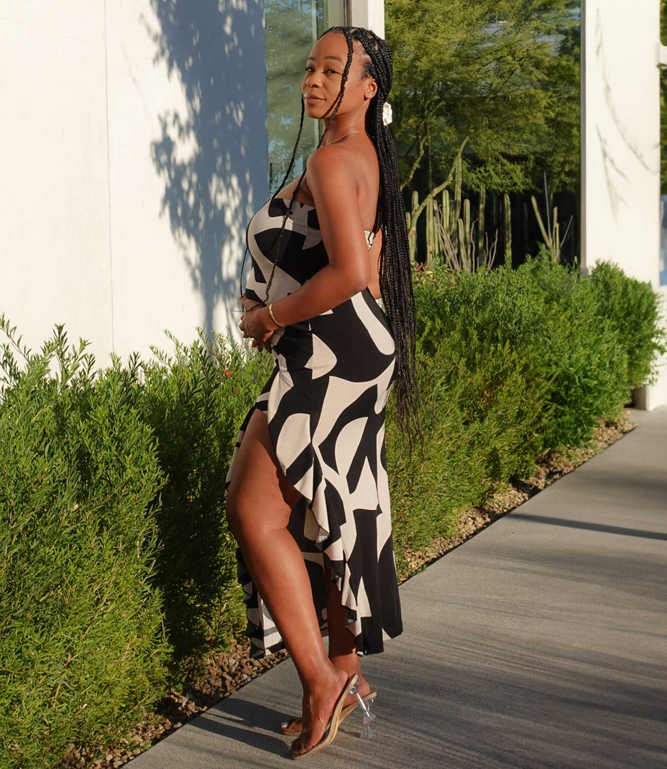 •Style Guide: This strapless dress is tailored to flatter shorter heights with its perfect length and elegant side slit that features delicate ruffle detailing. Crafted from stretchy, lightweight, and breathable fabric, it ensures comfort and ease of movement. Its unique pattern makes it an ideal statement piece suitable for any season.